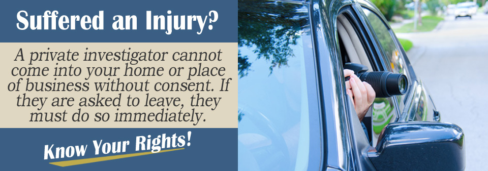 A personal injury attorney could help you with your claim and will ensure that your rights are protected. Your accident injury lawyer will be able to determine if the private investigator has broken any laws or violated your rights.